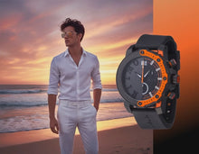 Bound together with solid block aluminum and surgical grade hypoallergenic steel, the Quantum timepiece is a is an architectural statement with a strong industrial look. 50mm case houses an intricate three dimensional half carbon fiber dial with date window, 1/10 second and 60 second sub dials run by a Swiss Ronda 3540.D Chronograph movement. Durable silicon strap is specially designed with dual holes to ensure a comfortable and secure fit. 10 ATM water resistance takes the Quantum from every day to every adventure.